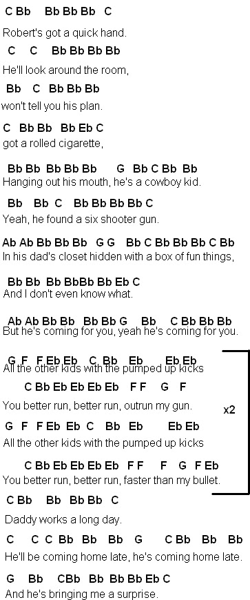 Pumped Up Kicks J132 Foster The People Indie Rock Intro Fills 4x Fill 2nd4th X T Se Verse 4x Pumped Up Kicks Chords Bass Meaning Lyrics Tab Songsterr Live Band Live