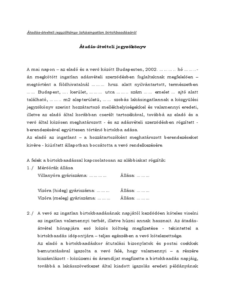 Birtokbaadasi Jegyzokonyv Tokeletes Ingatlan Kiadasi Berletiszerzodes Minta