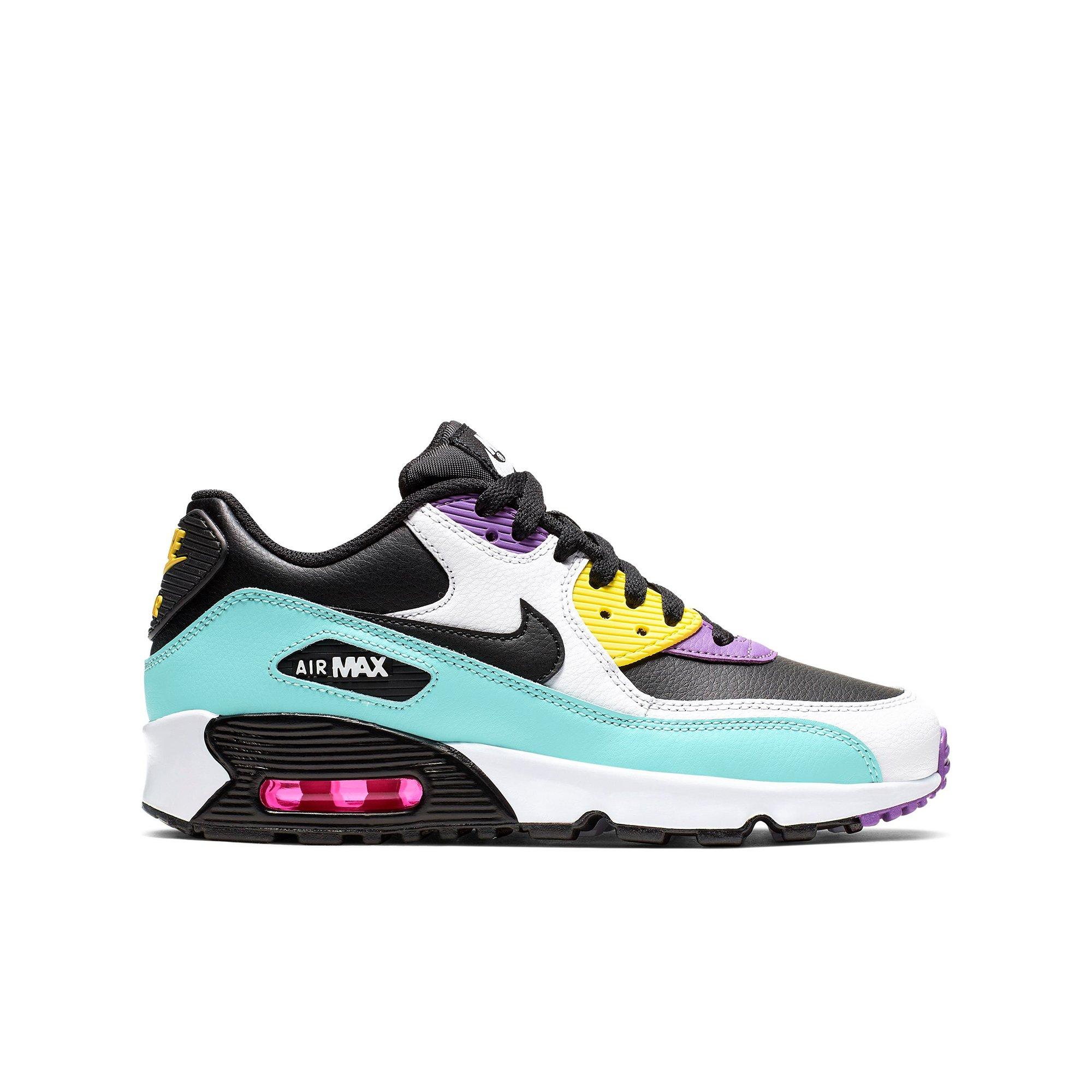 Nike Air Max 90 Leather Black White Violet Grade School Kids Shoe Hibbett City Gear