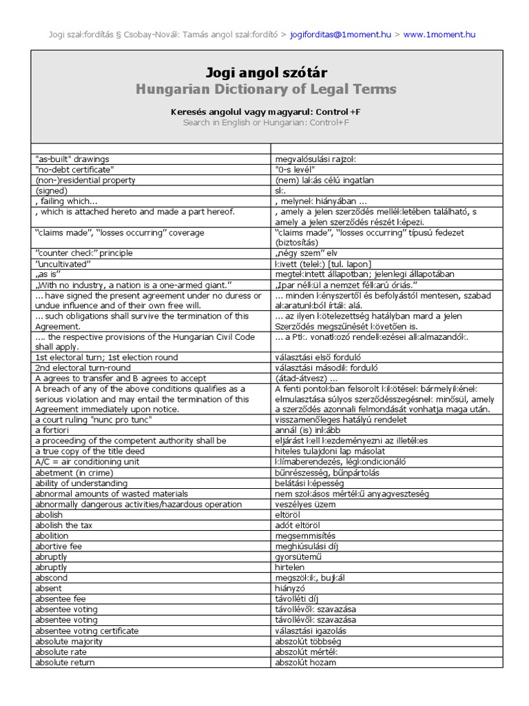 English Hungarian Legal Dictionary